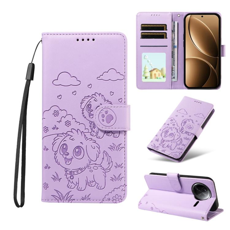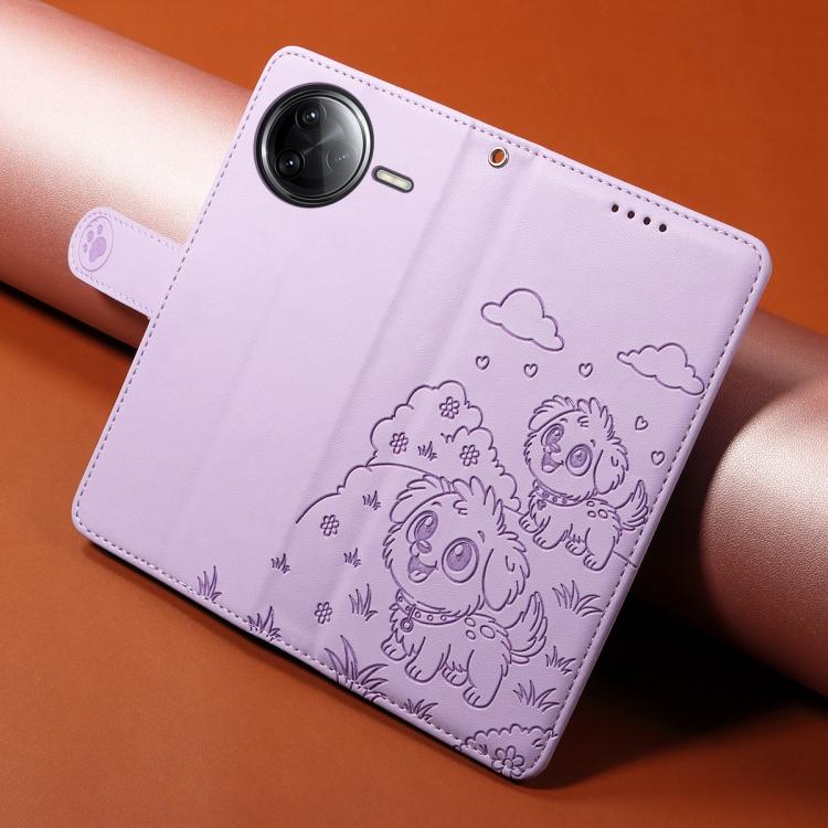 For Redmi K80 Pro / Poco F7 Ultra Embossed Heart Dog RFID Blocking Wallet Leather Phone Case(Purple)