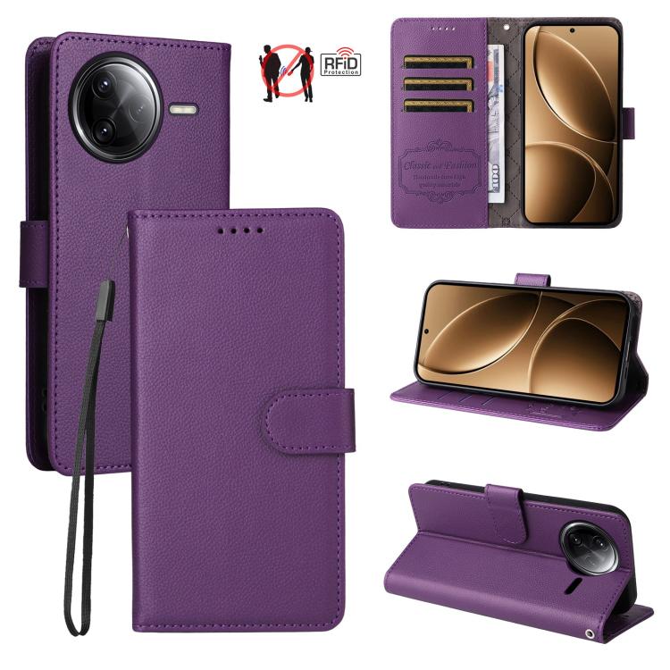 For Redmi K80 Pro / Poco F7 Ultra Litchi Texture RFID Blocking 3-Card Wallet Leather Phone Case(Purple)