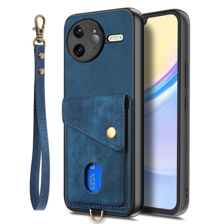 For Redmi K80 Pro / Poco F7 Ultra Retro Card Wallet Fold Leather Phone Case with Strap(Blue)