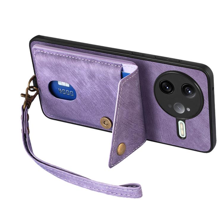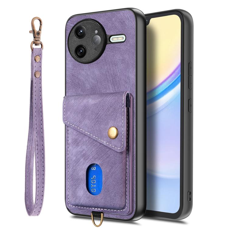 For Redmi K80 Pro / Poco F7 Ultra Retro Card Wallet Fold Leather Phone Case with Strap(Purple)