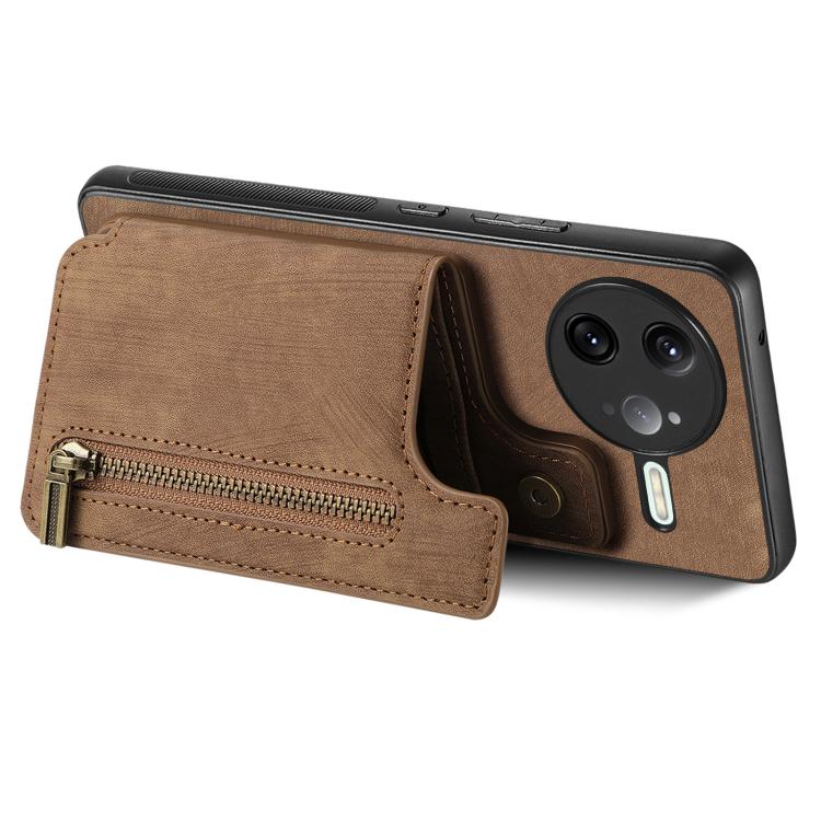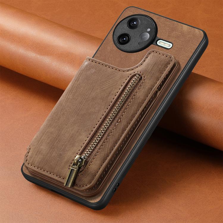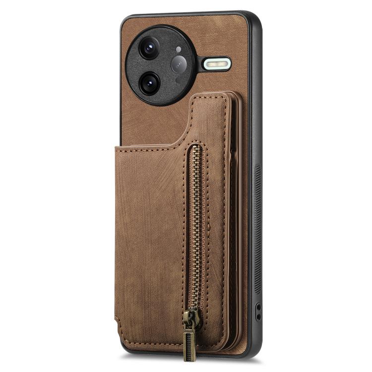 For Redmi K80 Pro / Poco F7 Ultra Retro Leather Zipper Wallet Back Phone Case(Brown)