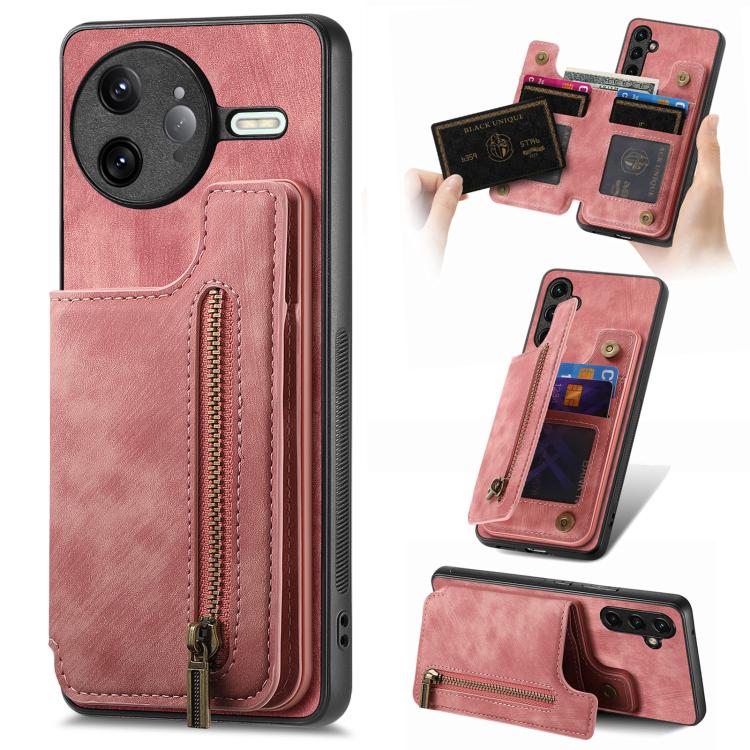 For Redmi K80 Pro / Poco F7 Ultra Retro Leather Zipper Wallet Back Phone Case(Pink)