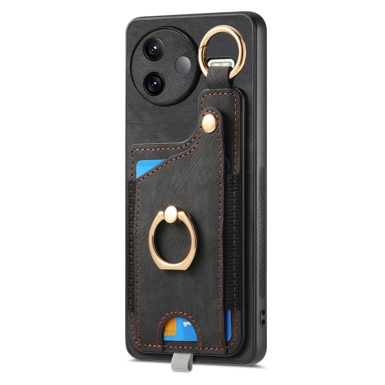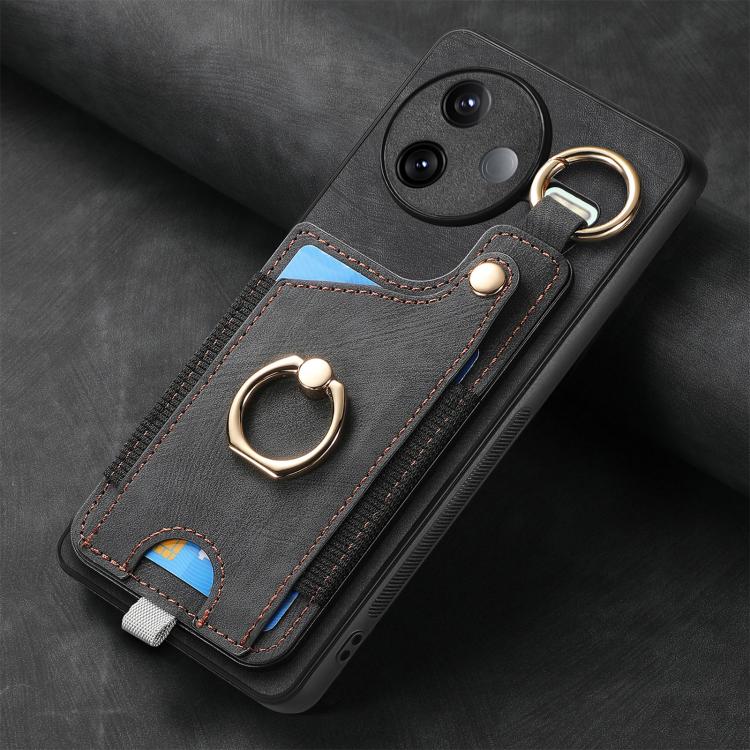 For Redmi K80 Pro / Poco F7 Ultra Retro Skin-feel Ring Card Bag Phone Case with Hang Loop(Black)