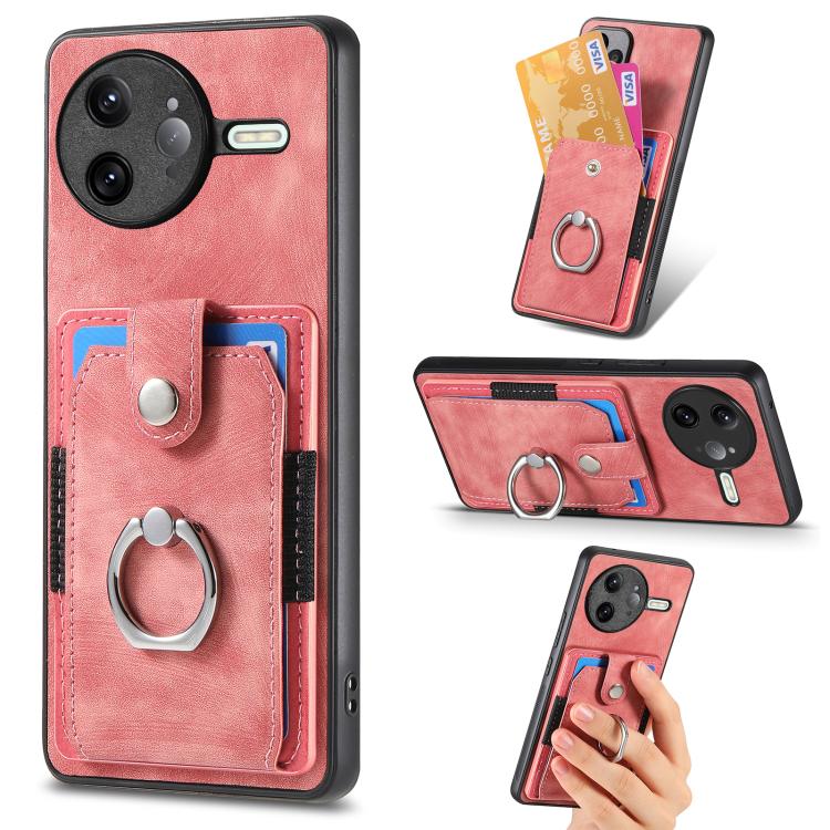 For Redmi K80 Pro / Poco F7 Ultra Retro Skin-feel Ring Card Wallet Phone Case(Pink)