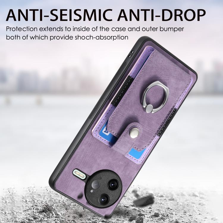 For Redmi K80 Pro / Poco F7 Ultra Retro Skin-feel Ring Card Wallet Phone Case(Purple)