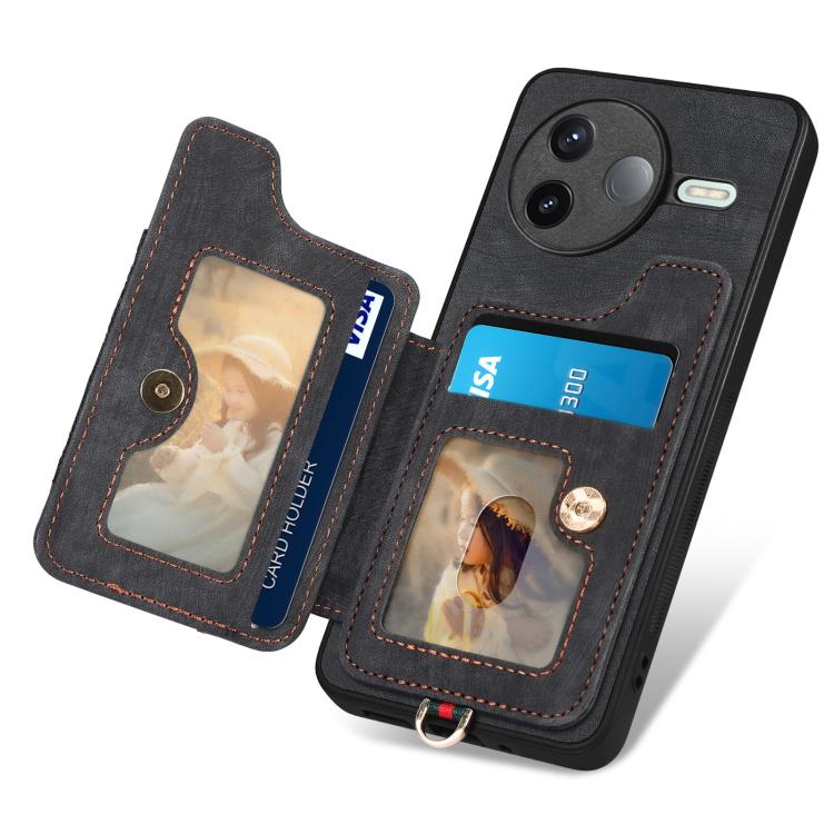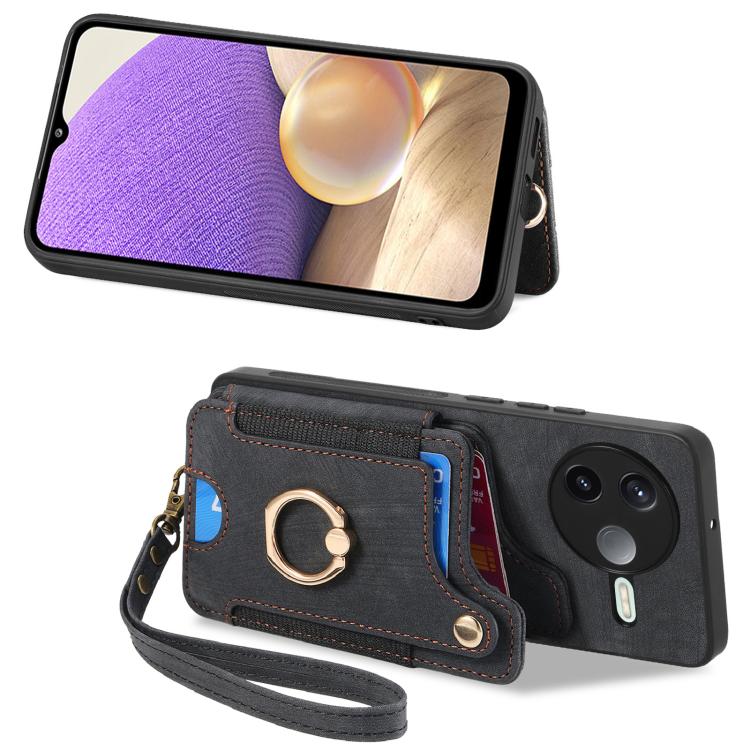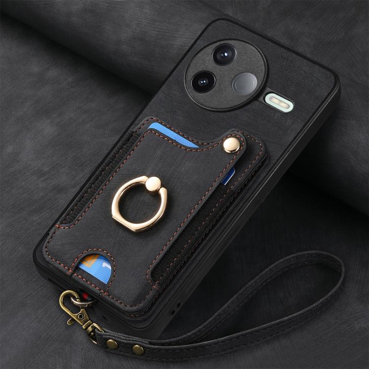 For Redmi K80 Pro / Poco F7 Ultra Retro Skin-feel Ring Multi-card RFID Wallet Phone Case(Black)