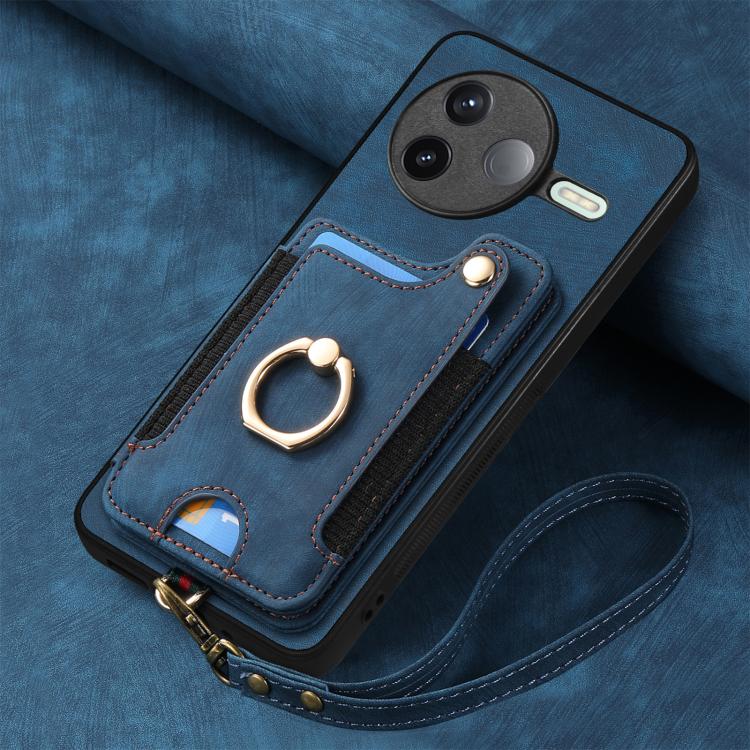 For Redmi K80 Pro / Poco F7 Ultra Retro Skin-feel Ring Multi-card RFID Wallet Phone Case(Blue)