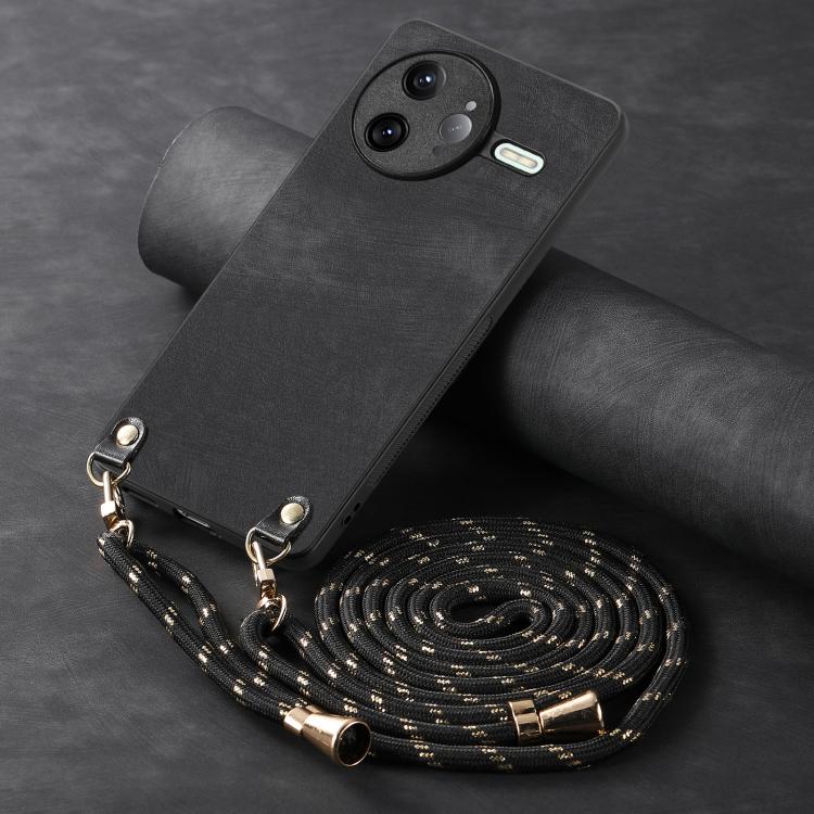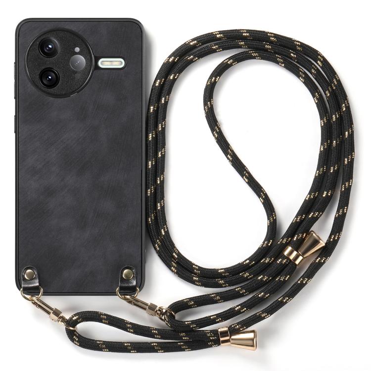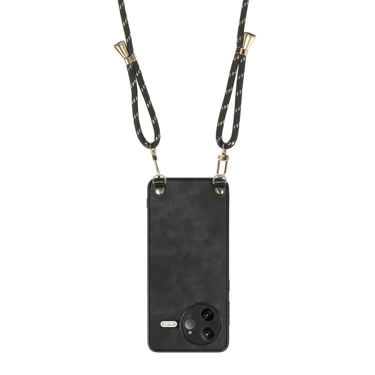 For Redmi K80 Pro / Poco F7 Ultra Vintage Leather PC Back Cover Phone Case with Crossbody Strap(Black)