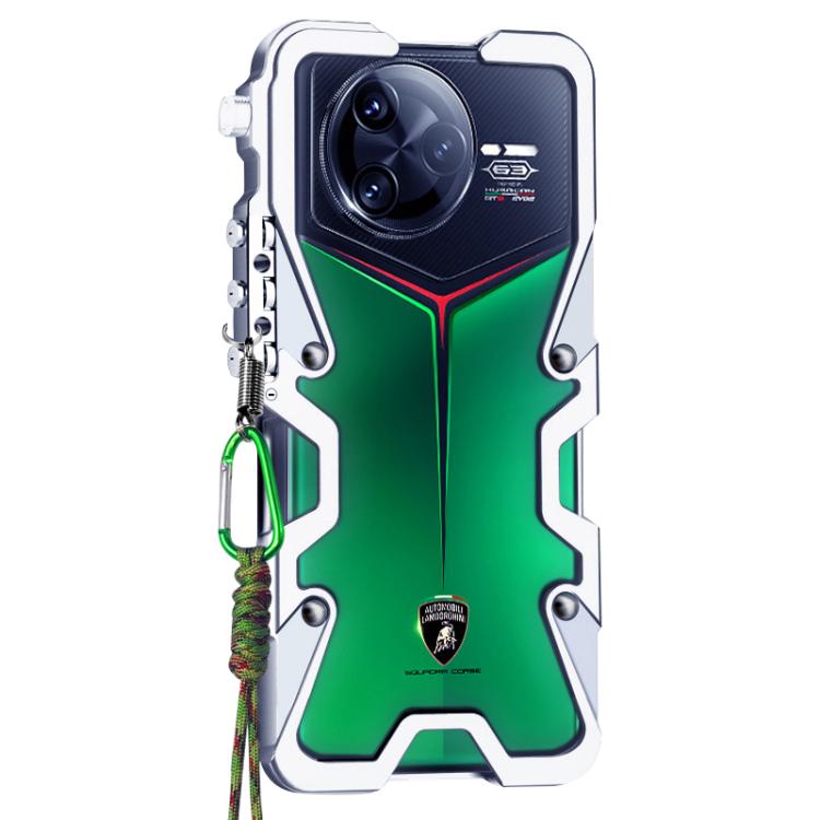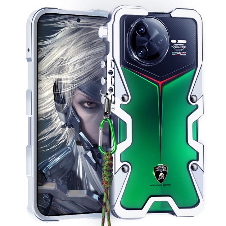 For Redmi K80 Pro Trigger Design Hollow Metal Frame Phone Case with Lanyard(Silver)