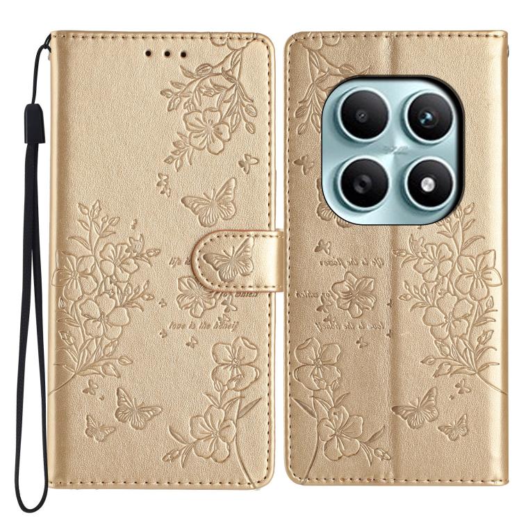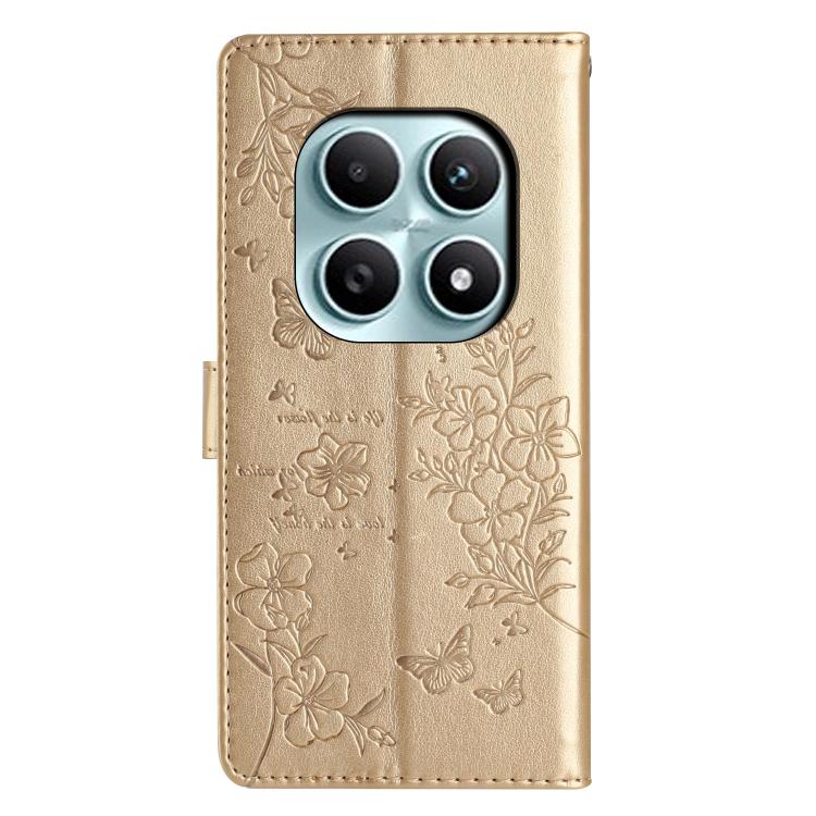 For Redmi Note 15 5G Global 164mm Butterflies and Flowers Leather Phone Case(Gold)
