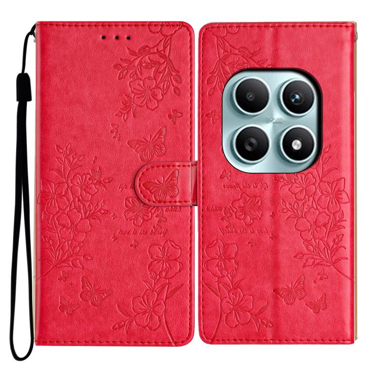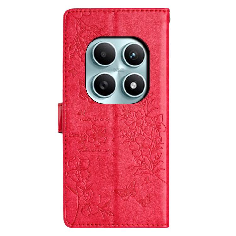 For Redmi Note 15 5G Global 164mm Butterflies and Flowers Leather Phone Case(Red)