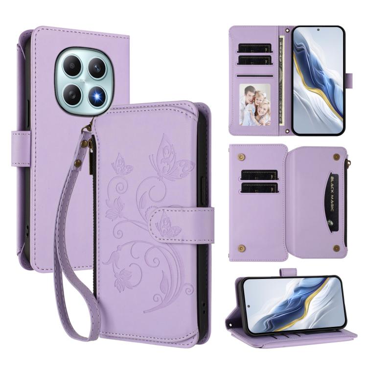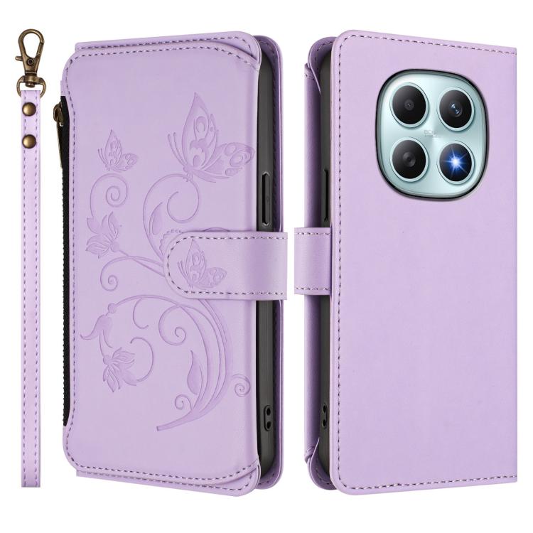 For Redmi Note 15 5G Global 164mm Butterfly Love Flower Multi-card Zipper Wallet Leather Phone Case(Light Purple)