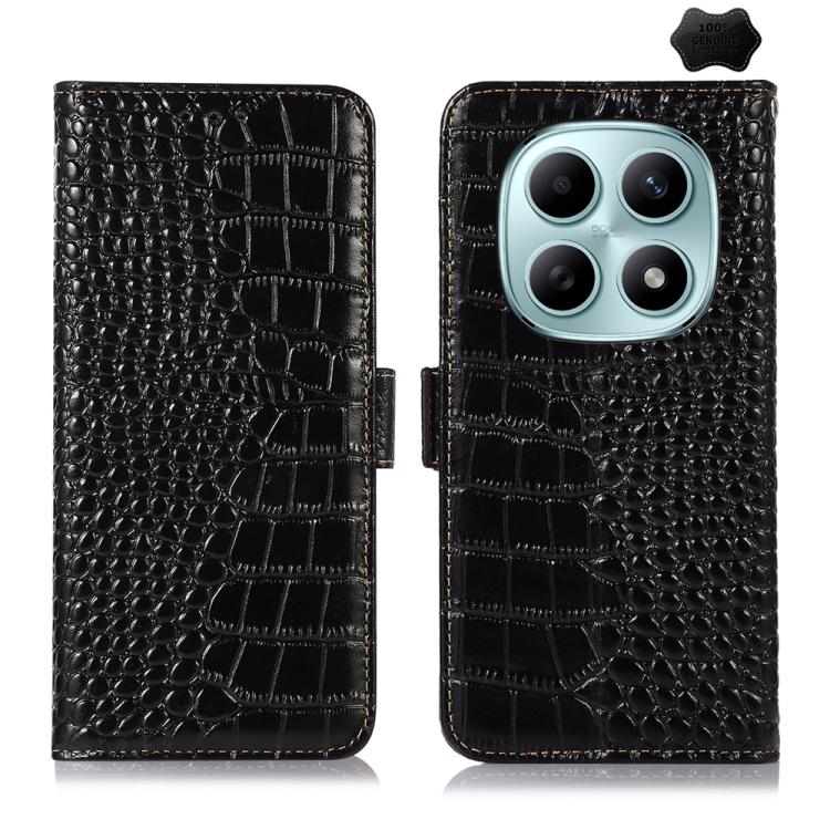 For Redmi Note 15 5G Global 164mm Crocodile Top Layer Cowhide Leather Phone Case(Black)