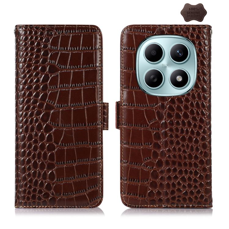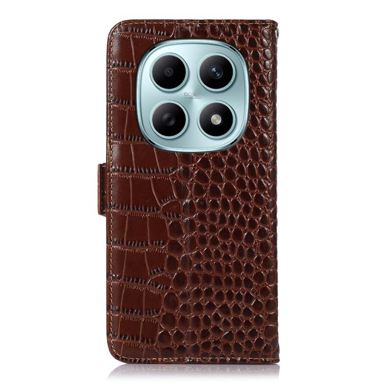 For Redmi Note 15 5G Global 164mm Crocodile Top Layer Cowhide Leather Phone Case(Brown)
