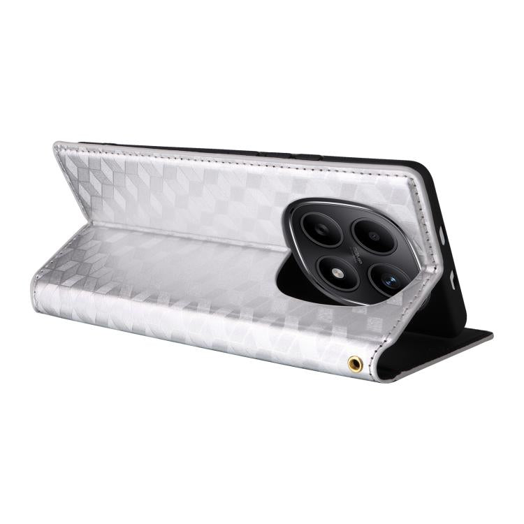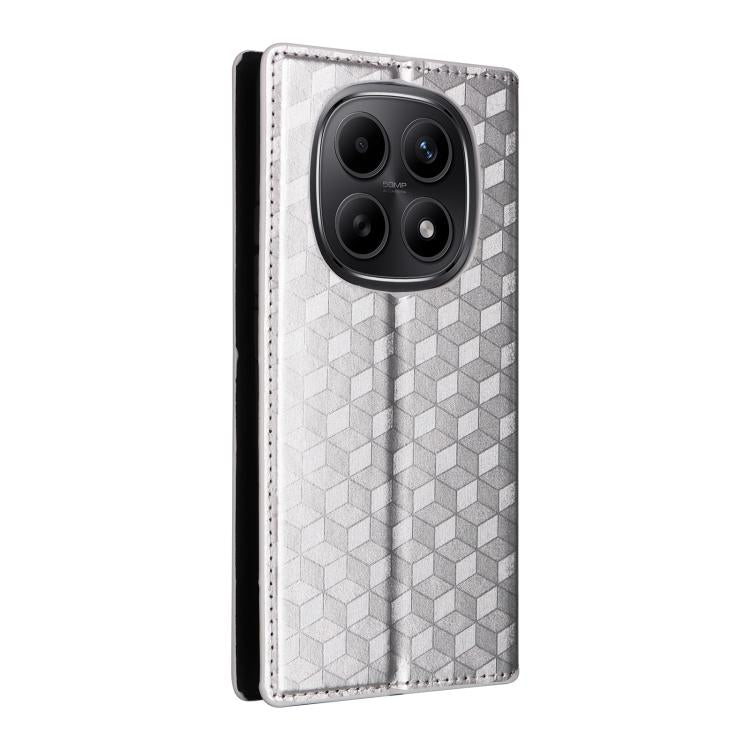 For Redmi Note 15 5G Global 164mm Cubic Grid Texture Flip Leather Phone Case(Silver)