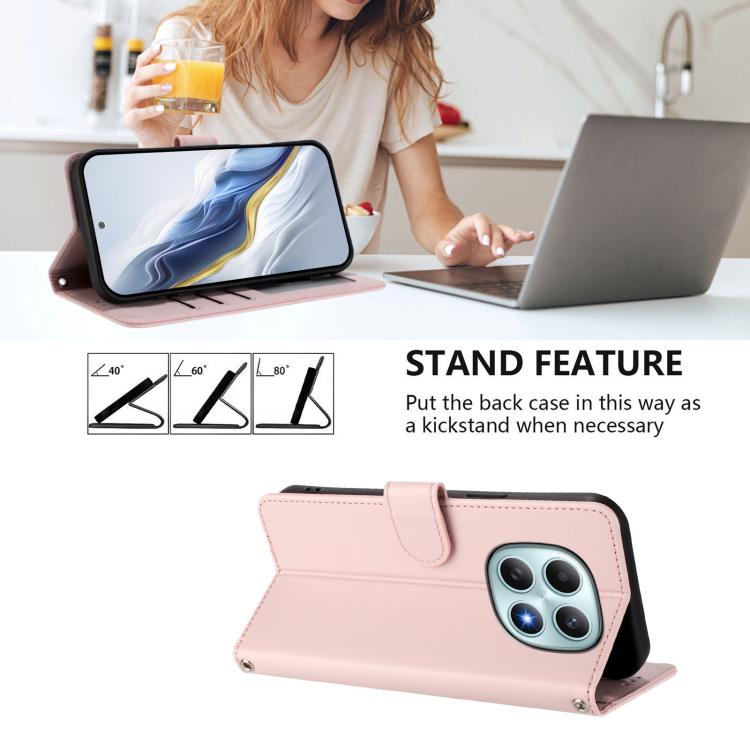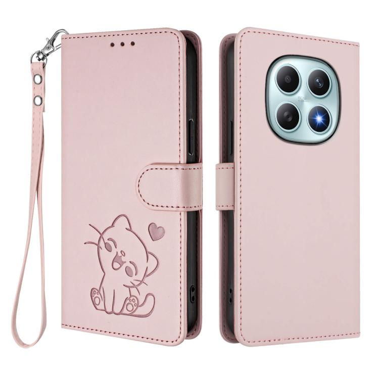 For Redmi Note 15 5G Global 164mm Embossed Heart Cat Leather Phone Case with Hand Strap(Pink)
