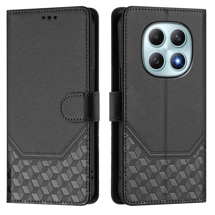 For Redmi Note 15 5G Global 164mm Honeycomb Embossing RFID Leather Phone Case(Black)