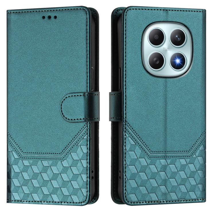 For Redmi Note 15 5G Global 164mm Honeycomb Embossing RFID Leather Phone Case(Peacock Green)
