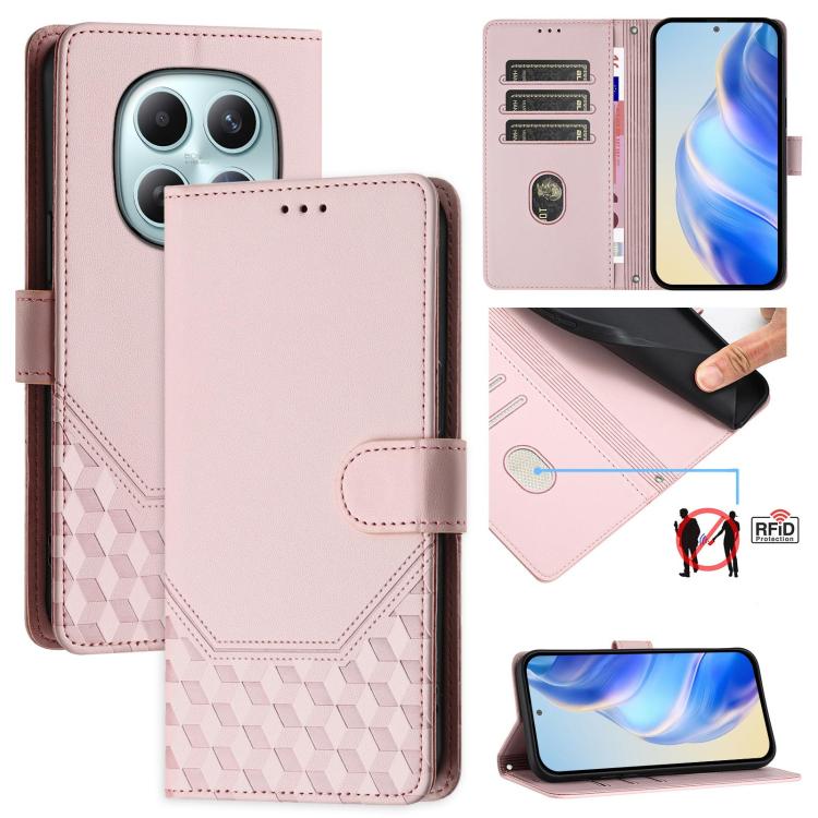 For Redmi Note 15 5G Global 164mm Honeycomb Embossing RFID Leather Phone Case(Pink)