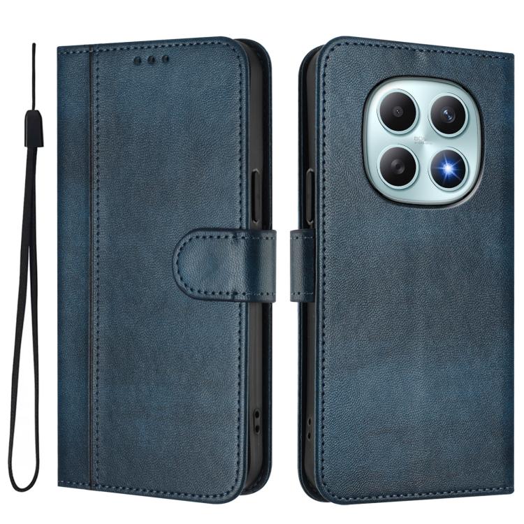 For Redmi Note 15 5G Global 164mm Line Splicing Buckle Retro Leather Phone Case(Dark Blue)