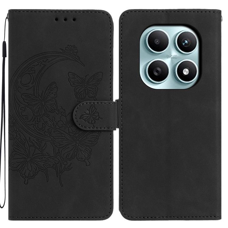 For Redmi Note 15 5G Global 164mm Moonlit Butterfly Dance Pattern Embossed Leather Phone Case(Black)