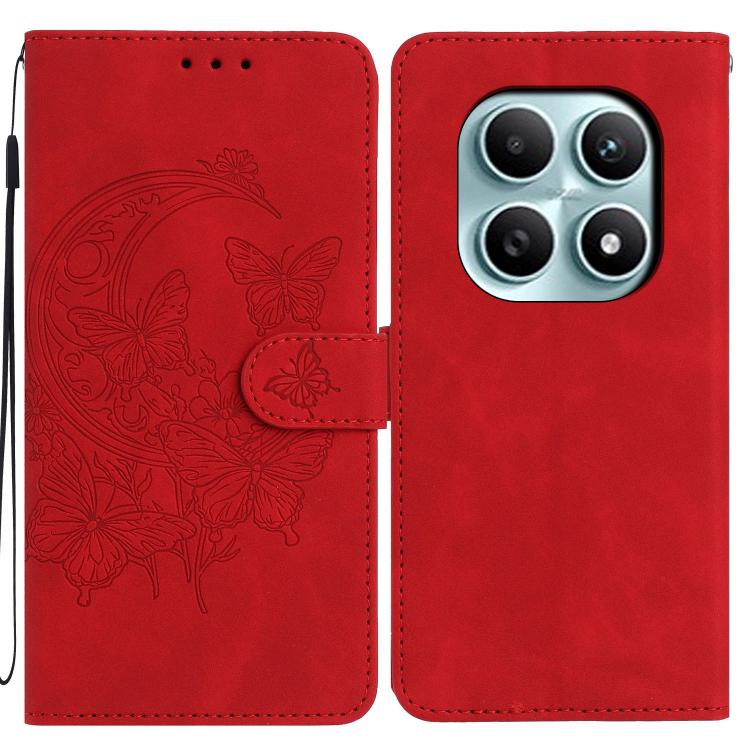 For Redmi Note 15 5G Global 164mm Moonlit Butterfly Dance Pattern Embossed Leather Phone Case(Red)