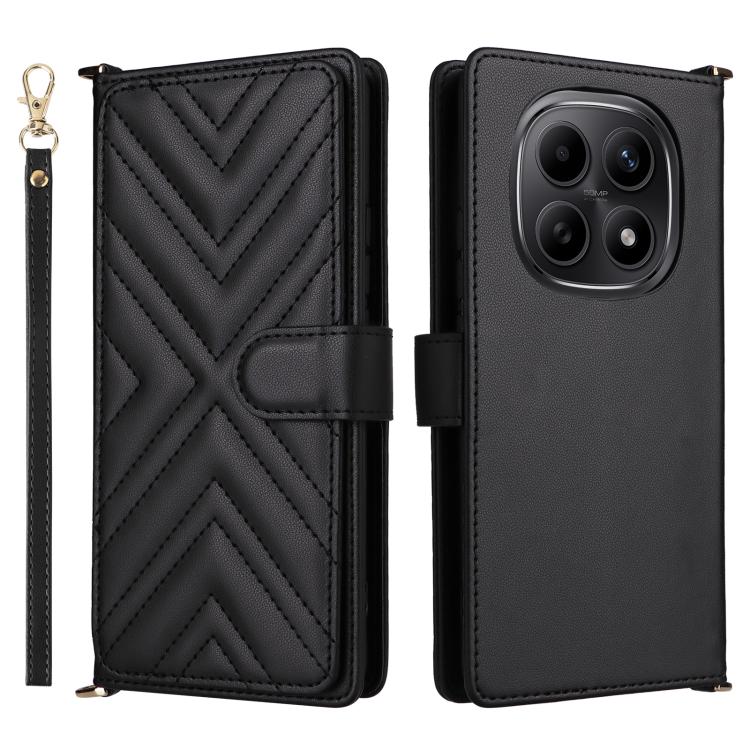 For Redmi Note 15 5G Global 164mm Multifunctional 6-Card Slots Leather Phone Case with Wrist Strap(Black)