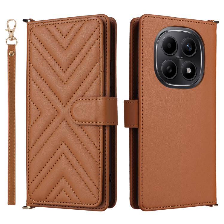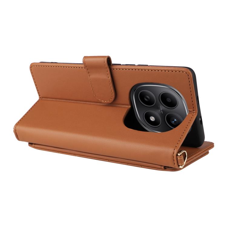 For Redmi Note 15 5G Global 164mm Multifunctional 6-Card Slots Leather Phone Case with Wrist Strap(Brown)