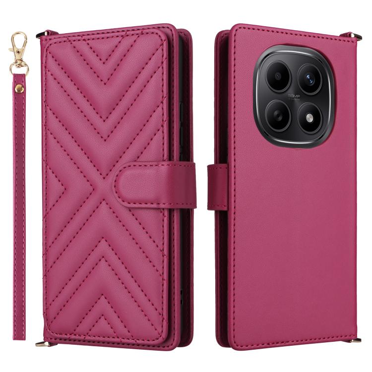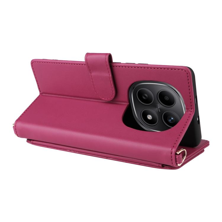 For Redmi Note 15 5G Global 164mm Multifunctional 6-Card Slots Leather Phone Case with Wrist Strap(Rose Red)