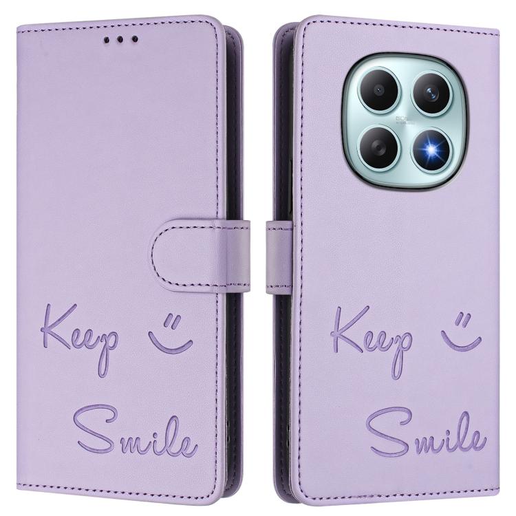 For Redmi Note 15 5G Global 164mm Smile Embossing RFID Leather Phone Case(Light Purple)