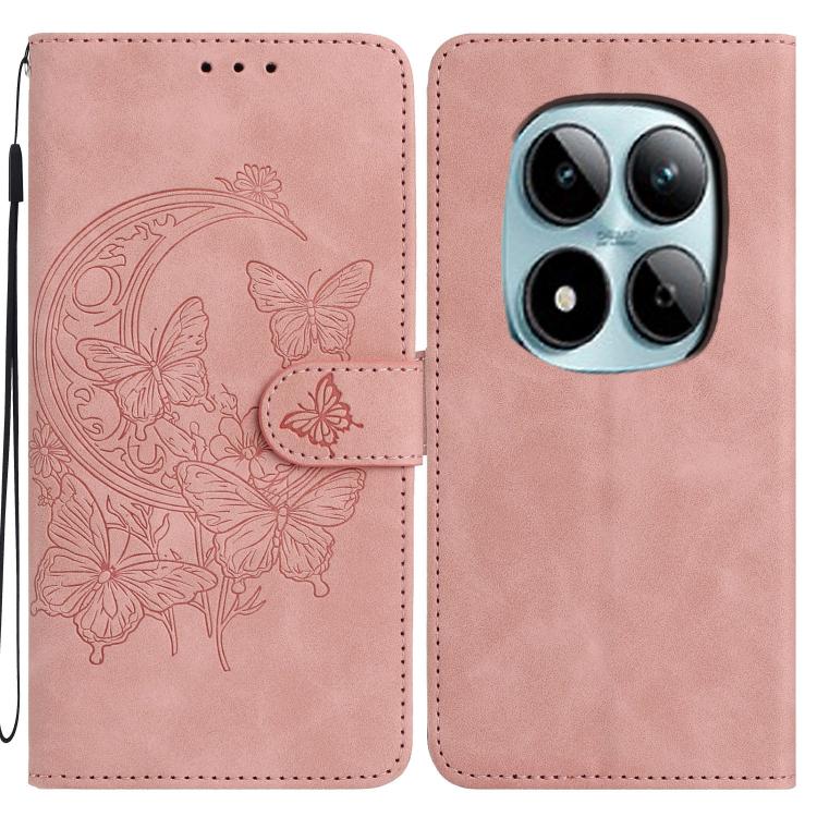 For Redmi Note 15 Pro+ 5G Global 163.3 Moonlit Butterfly Dance Pattern Embossed Leather Phone Case(Pink)