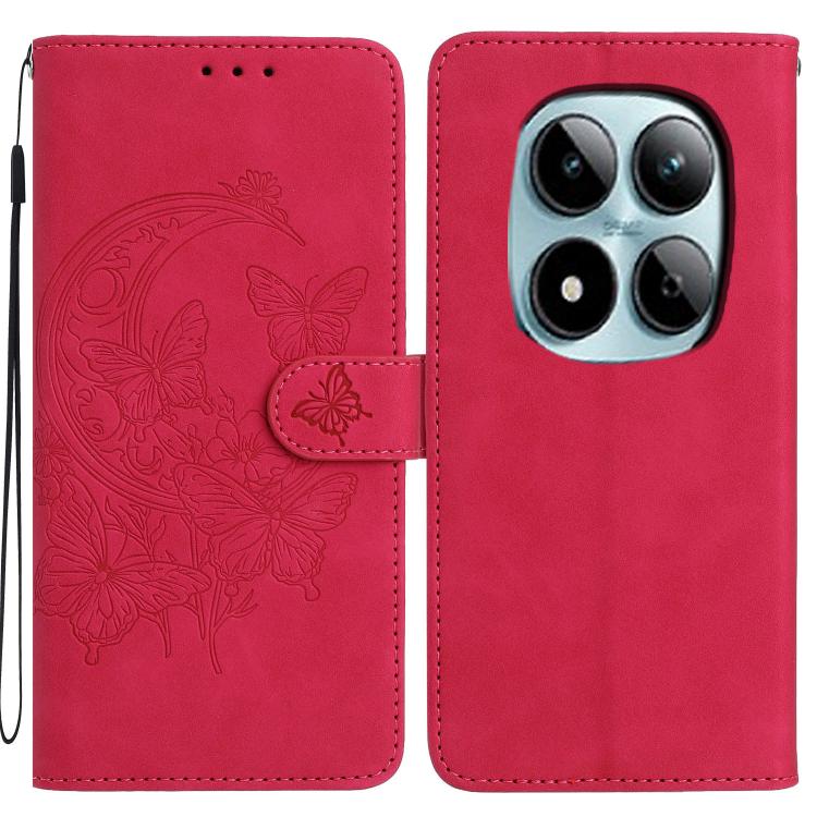 For Redmi Note 15 Pro+ 5G Global 163.3 Moonlit Butterfly Dance Pattern Embossed Leather Phone Case(Rose Red)