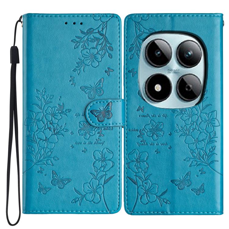 For Redmi Note 15 Pro+ 5G Global 163.3mm Butterflies and Flowers Leather Phone Case(Blue)