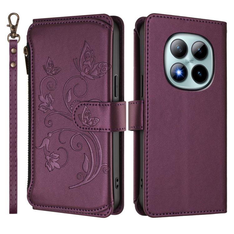 For Redmi Note 15 Pro+ 5G Global 163.3mm Butterfly Love Flower Multi-card Zipper Wallet Leather Phone Case(Dark Purple)