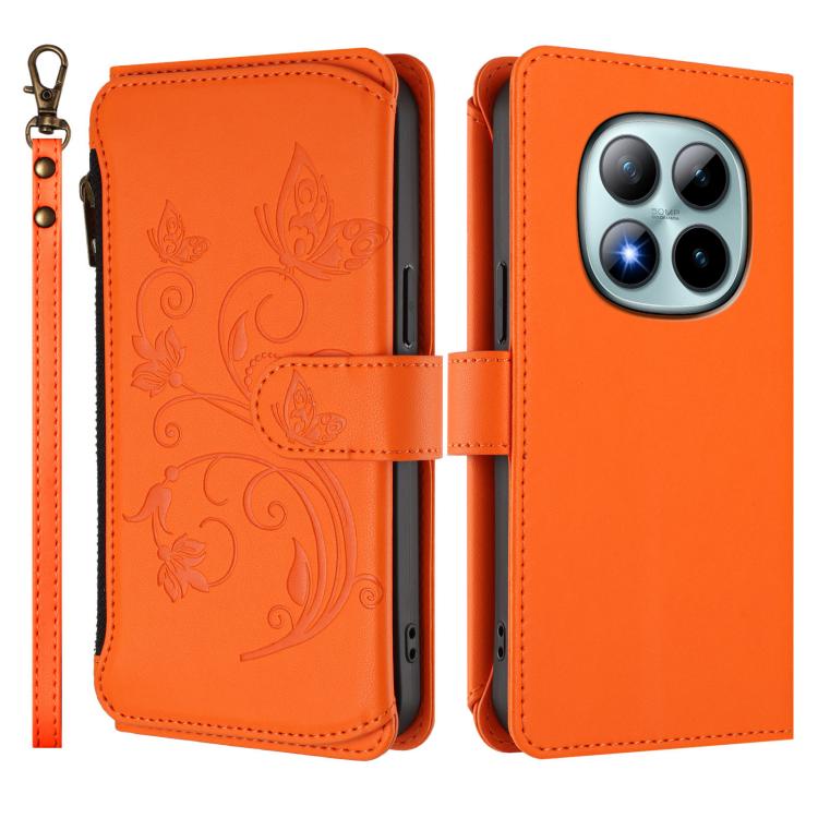 For Redmi Note 15 Pro+ 5G Global 163.3mm Butterfly Love Flower Multi-card Zipper Wallet Leather Phone Case(Orange)