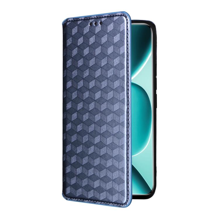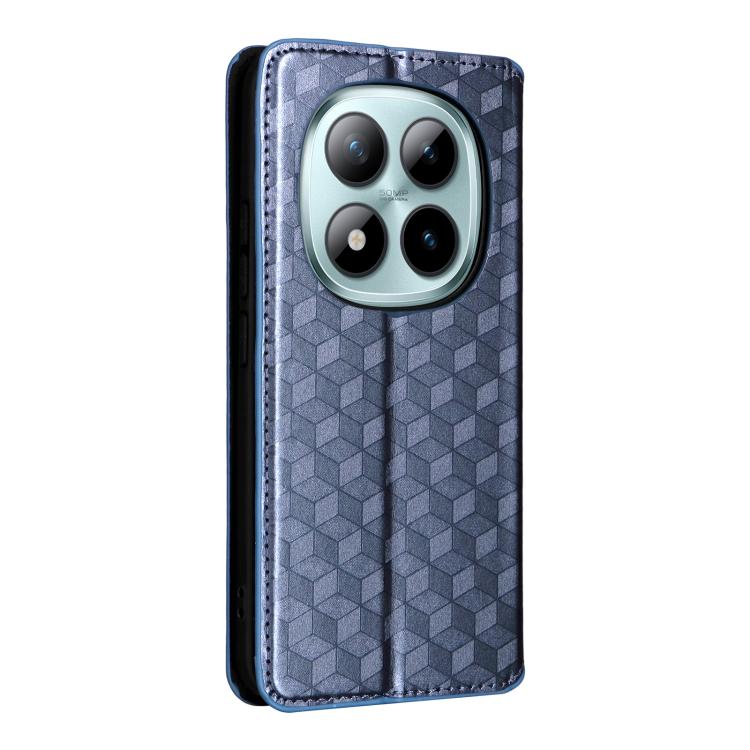 For Redmi Note 15 Pro+ 5G Global 163.3mm Cubic Grid Texture Flip Leather Phone Case(Blue)