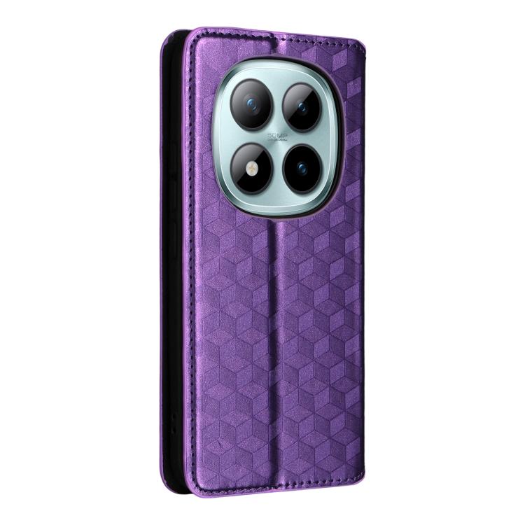 For Redmi Note 15 Pro+ 5G Global 163.3mm Cubic Grid Texture Flip Leather Phone Case(Purple)