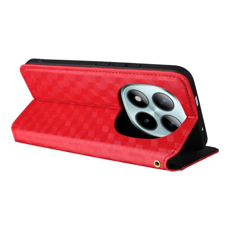 For Redmi Note 15 Pro+ 5G Global 163.3mm Cubic Grid Texture Flip Leather Phone Case(Red)
