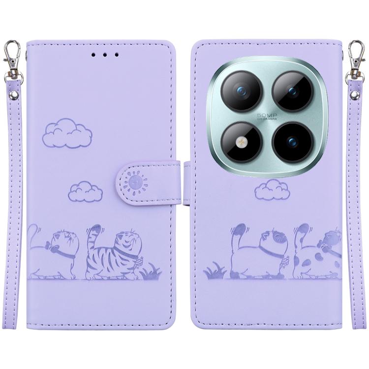For Redmi Note 15 Pro+ 5G Global 163.3mm Cute Cats RFID Leather Phone Case(Purple)