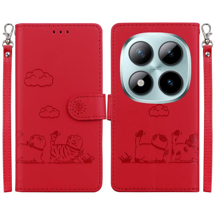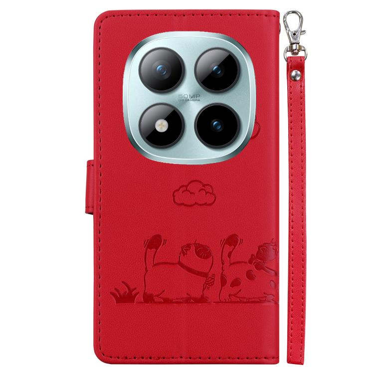 For Redmi Note 15 Pro+ 5G Global 163.3mm Cute Cats RFID Leather Phone Case(Red)