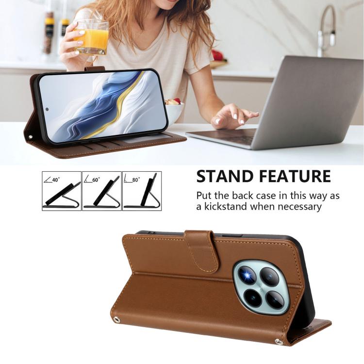 For Redmi Note 15 Pro+ 5G Global 163.3mm Embossed Heart Cat Leather Phone Case with Hand Strap(Brown)