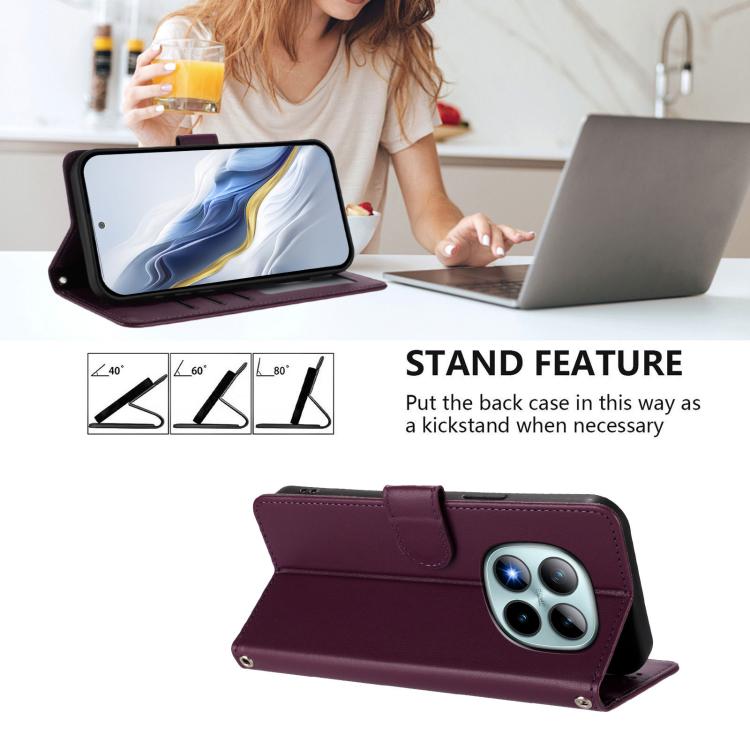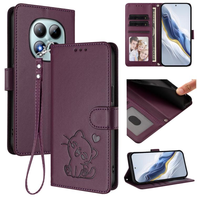 For Redmi Note 15 Pro+ 5G Global 163.3mm Embossed Heart Cat Leather Phone Case with Hand Strap(Dark Purple)