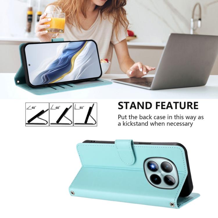 For Redmi Note 15 Pro+ 5G Global 163.3mm Embossed Heart Cat Leather Phone Case with Hand Strap(Mint Green)
