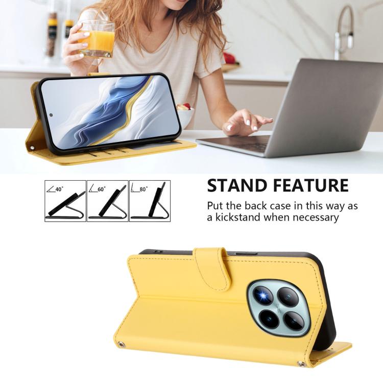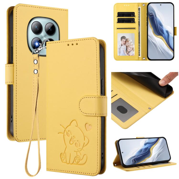For Redmi Note 15 Pro+ 5G Global 163.3mm Embossed Heart Cat Leather Phone Case with Hand Strap(Yellow)
