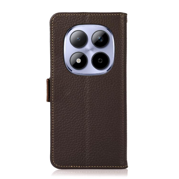 For Redmi Note 15 Pro+ 5G Global 163.3mm KHAZNEH Side-Magnetic Litchi Genuine Leather RFID Phone Case(Brown)
