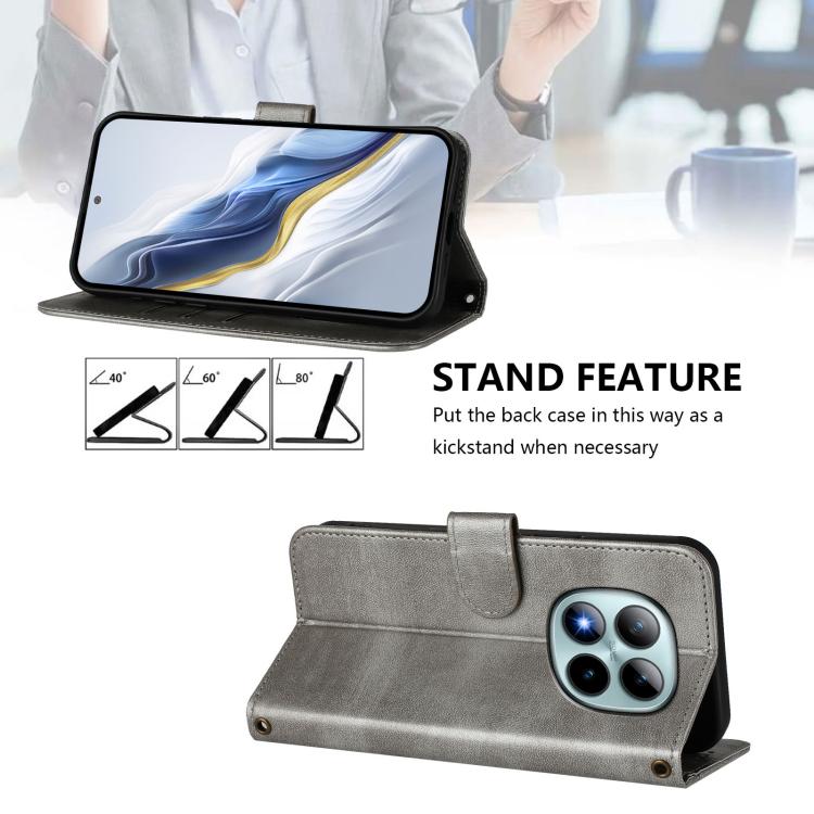 For Redmi Note 15 Pro+ 5G Global 163.3mm Line Splicing Buckle Retro Leather Phone Case(Grey)