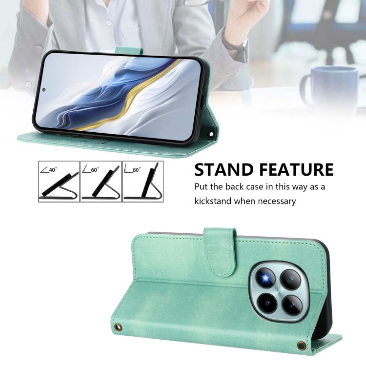 For Redmi Note 15 Pro+ 5G Global 163.3mm Line Splicing Buckle Retro Leather Phone Case(Mint)