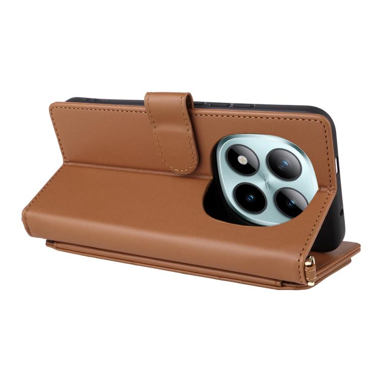 For Redmi Note 15 Pro+ 5G Global 163.3mm Multifunctional 6-Card Slots Leather Phone Case with Wrist Strap(Brown)