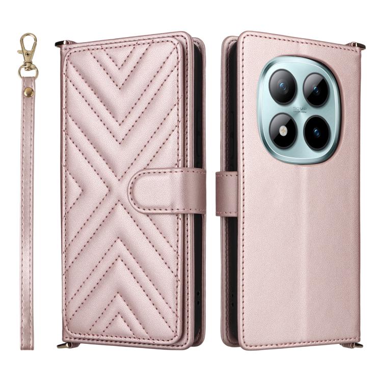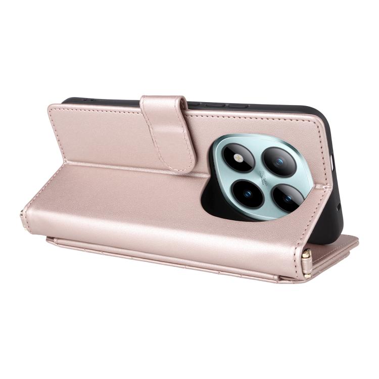 For Redmi Note 15 Pro+ 5G Global 163.3mm Multifunctional 6-Card Slots Leather Phone Case with Wrist Strap(Pink)