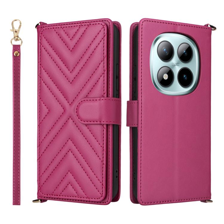 For Redmi Note 15 Pro+ 5G Global 163.3mm Multifunctional 6-Card Slots Leather Phone Case with Wrist Strap(Rose Red)
